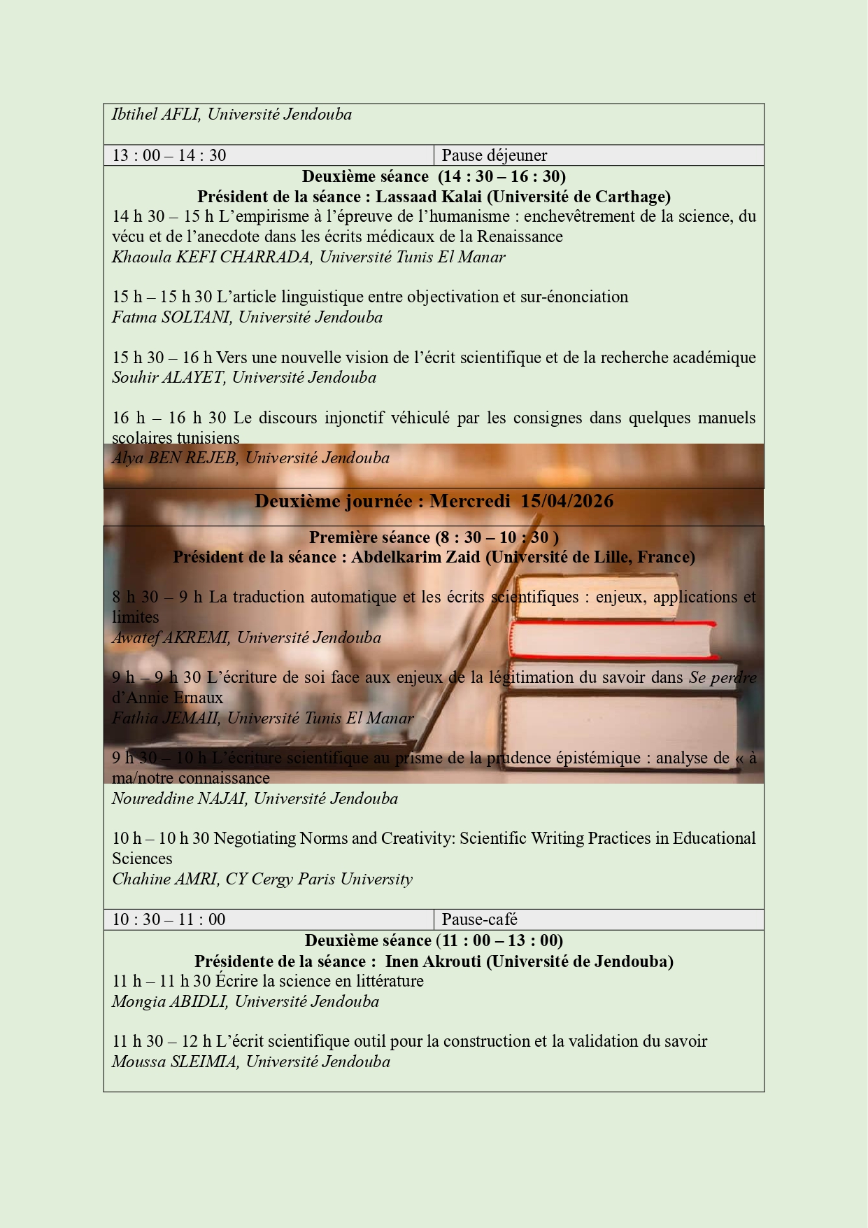 Directrice : Pr.Narjess Sidi d'Outreligne