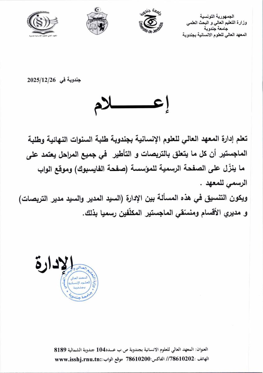 بلاغ لجميع الطلبة