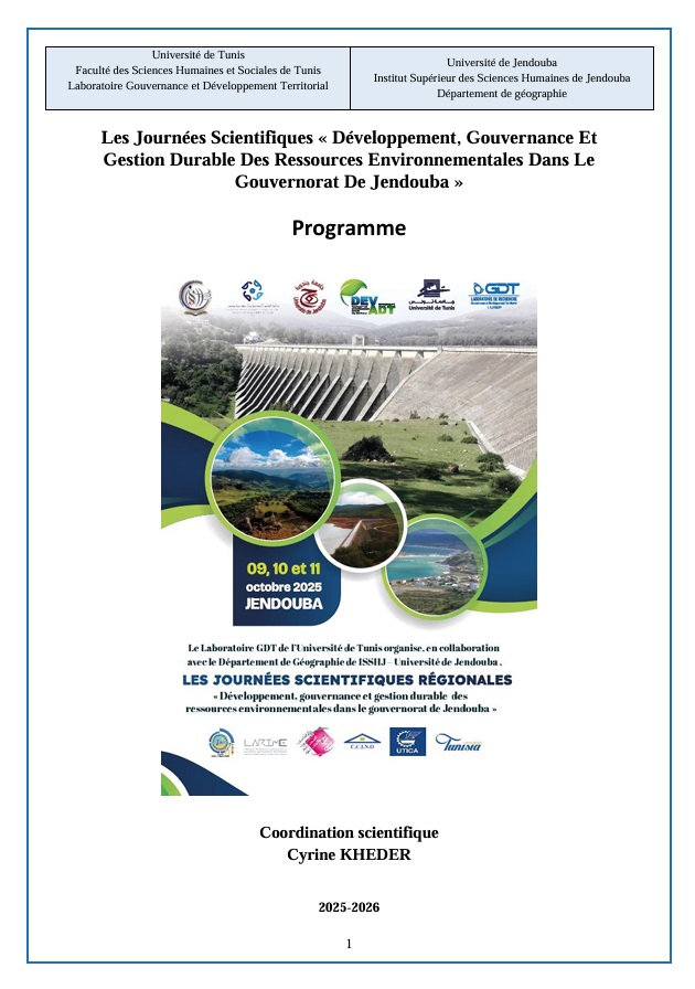 Les Journées Scientifiques « Développement, Gouvernance Et Gestion Durable Des Ressources Environnementales Dans Le Gouvernorat De Jendouba »